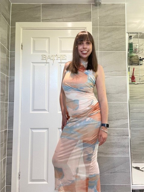 - Would you believe I picked up this mesh bodycon maxi dress for just one pound from the PDSA closing-down sale? The peach and baby blue colour combination is gorgeous, but I just didn’t feel comfortable in it. I’m not a fan of wearing skin-tight clothing and I wouldn’t be able to enjoy the wedding without constantly worrying that I’d look bloated. Expect to see it back in a charity shop soon, as it is a lovely dress, but it simply is not my style.