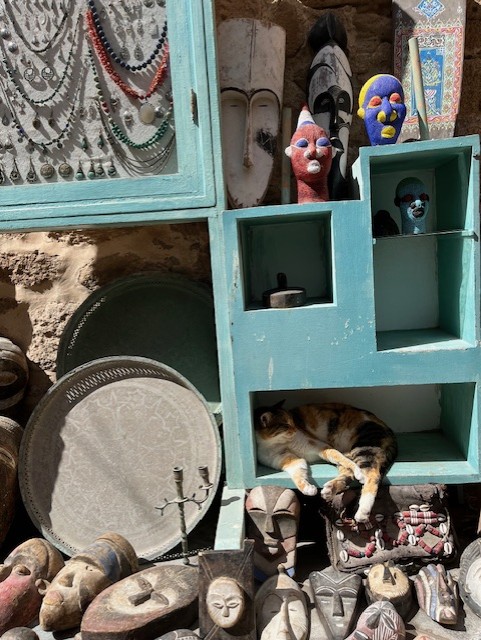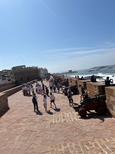 On our final full day in Morocco, we booked a trip to the coastal city of Essaouira. It took three hours to get there from Marrakesh by bus, but our driver broke up the journey by stopping at various points along the way, including an argan oil factory. We explored the city’s beautiful old town, which is built around the Medina of Essaouira, an 18th century fortress. There were loads of little shops selling gorgeous clothes and homeware; perfect if you love shopping when you’re abroad. I was charmed by the abundance of cats that made themselves at home in and outside of the shops. The town was small enough to fully explore in a couple of hours; we wandered along the side streets that eventually led to the old fortress. From there you can see an impressive view of the Atlantic Ocean. We didn’t eat lunch in Essaouira, as we made full use of the buffet breakfast and dinner facilities at the hotel, but we stopped for a bottle of wine in a stunning roof-top bar that gave out olives and salted nuts. The town seemed a lot more westernised than Marrakesh and there was a lot more places that sold alcohol.